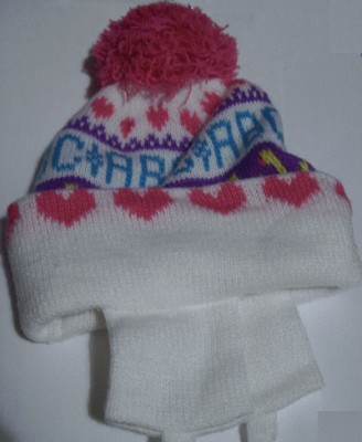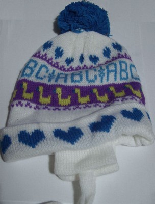 Bobble hat with "ABC" and "Ducks" with Hearts round the rim