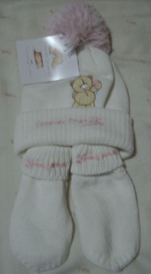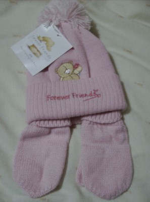 colours  cream with gold teddy  and  pink bobble  and forever friends writing  and   in  pink