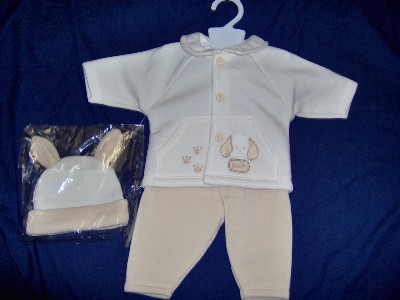 3 PIECE SET CONSISTING OF JACKET, TROUSERS AND HAT.